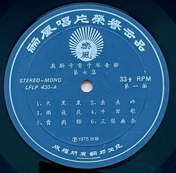 If you are interested in interpretations of Taiwanese folk songs, Oscar & His Orchestra deliver organ heavy renditions here. Rare.