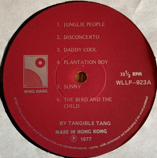 The only release from an enigmatic group, these are amazing HK band covers of some funk/soul/disco classics – quadraphonic pressing and rare to find. Tangible Tang is Joseph Tang !